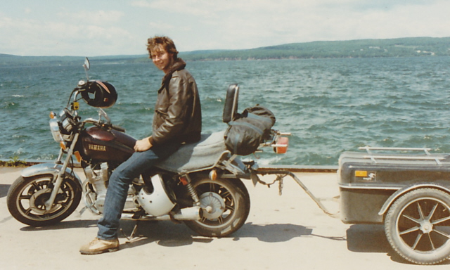 Here is the guy I fell for! This photo shows Cliff on his bike, with our travel trailer, taken in the early 1980s.